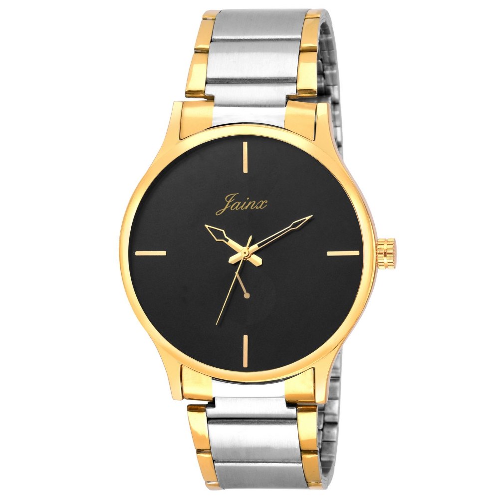 Men's DUAL-Tone Stainless Steel Watch - Gold & Silver Chain, BLACK Dial WITH A Combo of 1 Stainless Steel (Double wall Coffee Mug 380 ML) Lid Included .