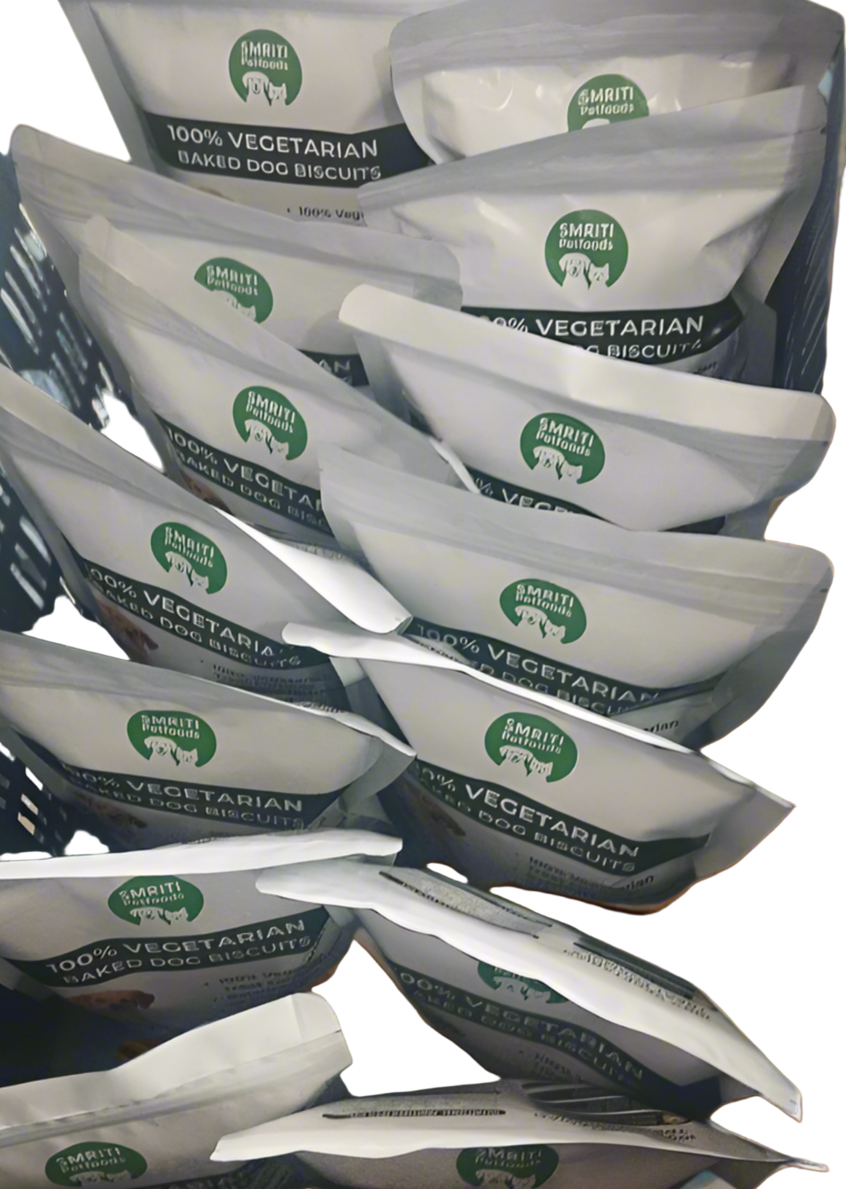 Give your dog the love they deserve with SMRITI Petfoods 100% Vegetarian Dog Biscuits – crunchy, tasty, and packed with nutrients! 🐶