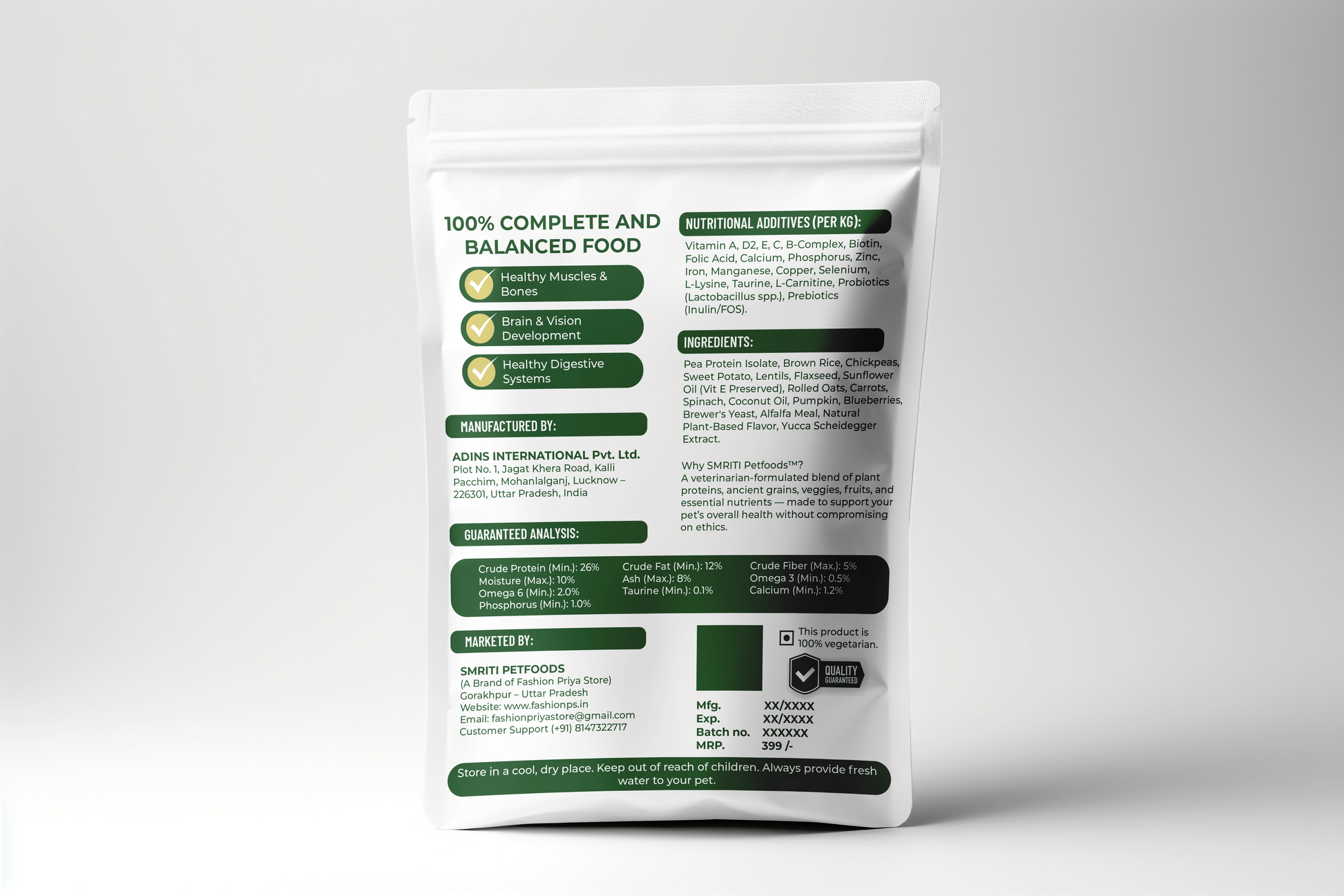 SMRITI Petfoods NEW 100% Vegetarian Dog Food β Protein-Rich, Natural Ingredients, Complete Nutrition for All Breeds & Ages